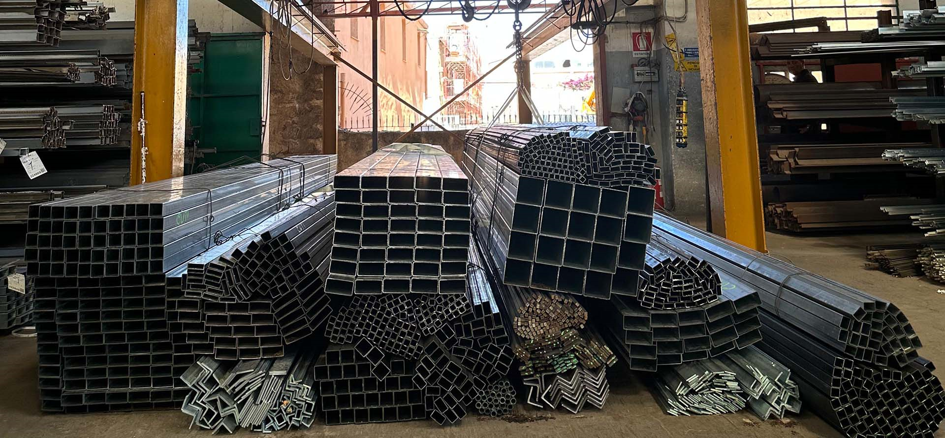 Travi INP, IPE, UPN , HEA/B, Tubolati neri Zincati-Lamiere nere, zincate preverniciate e grecate- Tubolari e lamiere in acciaio inox-Rame a nastri- Gronde e tubi in Rame-Ottone e bronzo B15- Acciaio al carbonio C-40 -Tubi per il gas e acqua Fretz Moon e Mannesmann-Raccorderia idraulica.